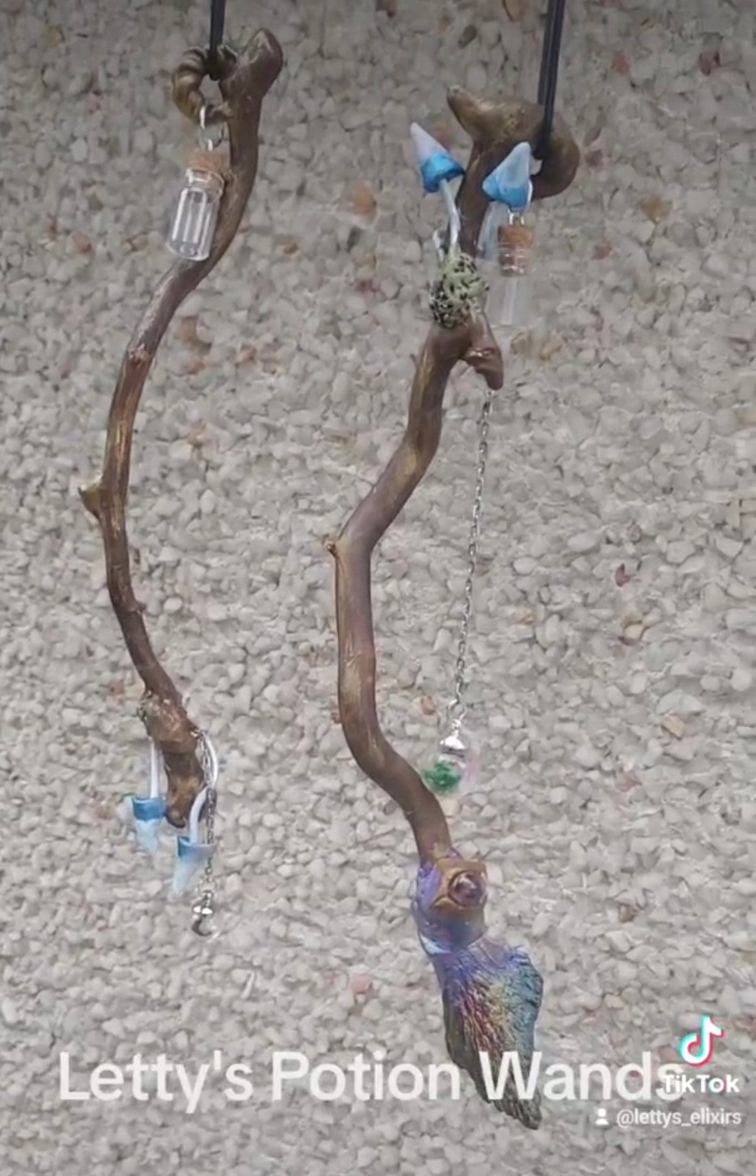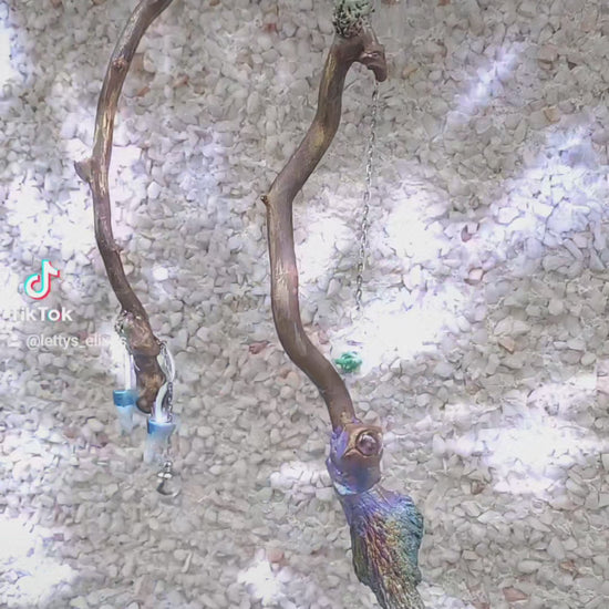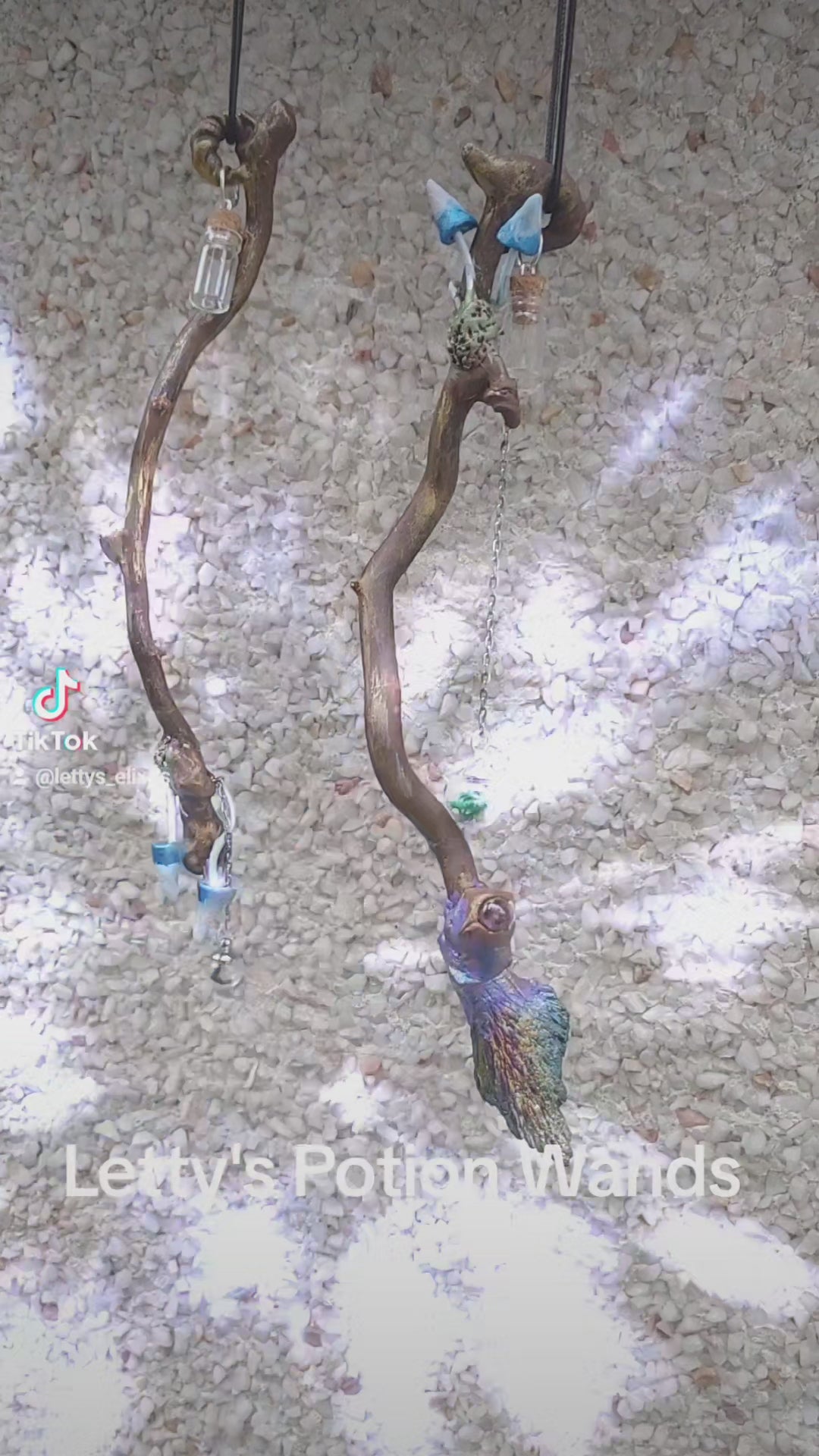 These lovely handmade wands are all one of a kind. The broom style comes with a choice of an electroplated tourmaile or natural fan. The base is a natural wood. Comes with your choice of Essential oil blend potion and crystals. Embellishments , such as , flowers, sparkles and bubbles can be added for free. Custom designs are available.