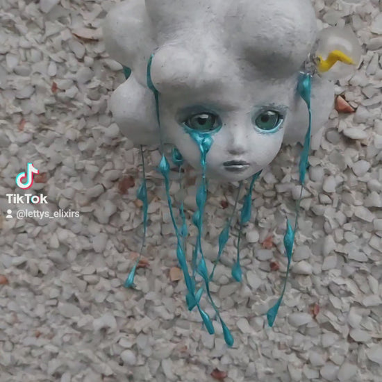 These come as moons and rain clouds. Each one may vary. Beautiful out all year round and hanging in plants. Hand sculpted and painted by Letty.