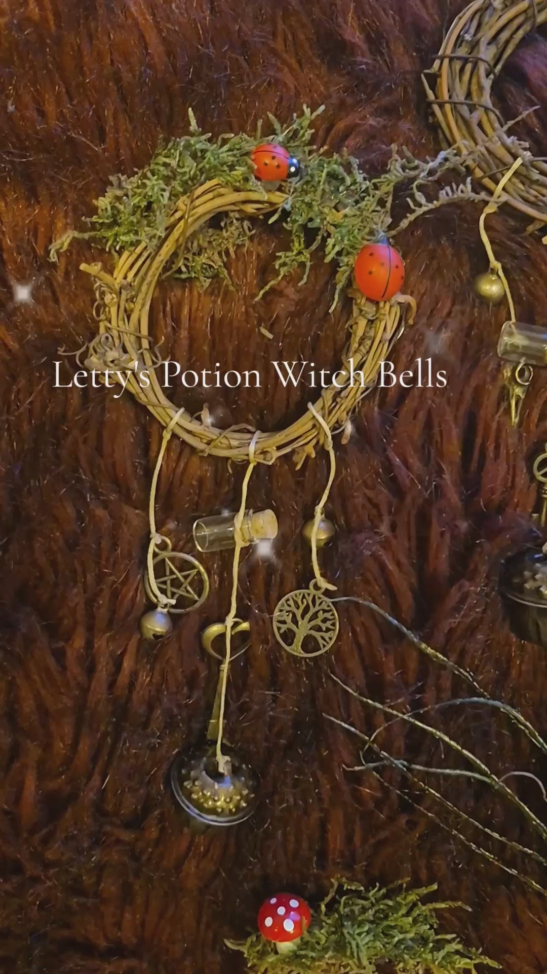 These lovely handmade witchbells are for protection and abundance. They come in gnome, broom, angel and ladybug styles. . Comes with your choice of Essential oil blend potion and crystals. Embellishments , such as , flowers, sparkles and bubbles can be added for free. Custom designs are available.