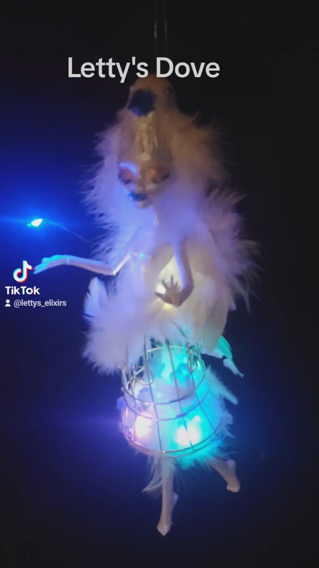 She is full of holiday vibes.These lovely Fairies come in all different colors and styles. Her birdcage opens to reveal a beautiful lit up crystal. All come with a diffusing potion bottle with your choice of potion and embellishments. Can come with or without lights in color or warm white.
