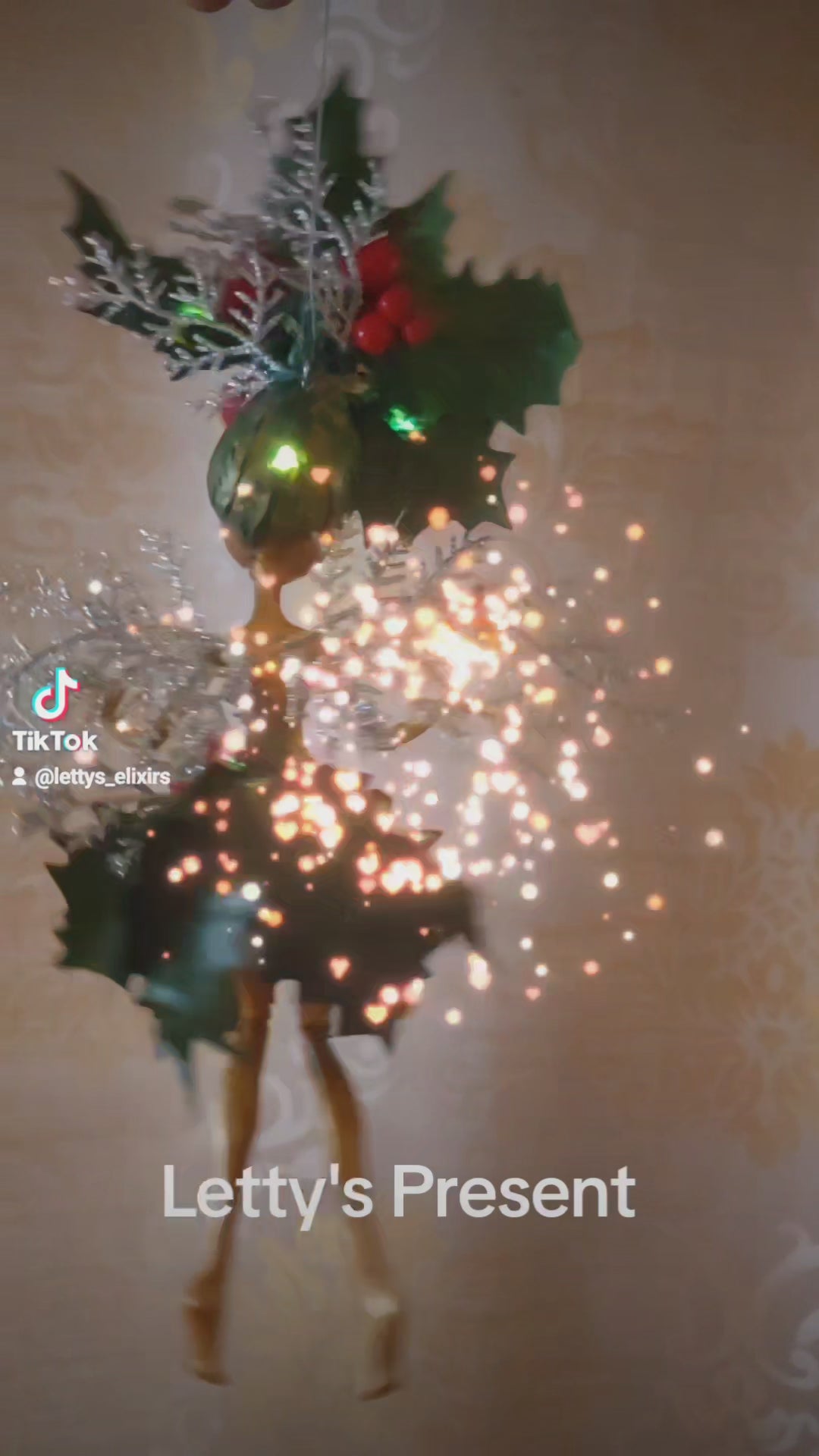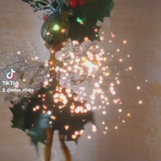 She is full of prickly holiday love. She floats a lit up apple towards your tree or anywhere else you want to bring magic to. These lovely Fairies come in all different colors and styles. All come with a diffusing potion bottle with your choice of potion and embellishments. Can come with or without lights in color or warm white.