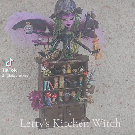 These Witches are made with a spell of abundance and protection. Comes with her own apothecary filled with mushrooms , herbs for protection and crystals. Her six arms are needed for her multitasking . Comes with a diffusing potion bottle with your choice of potion