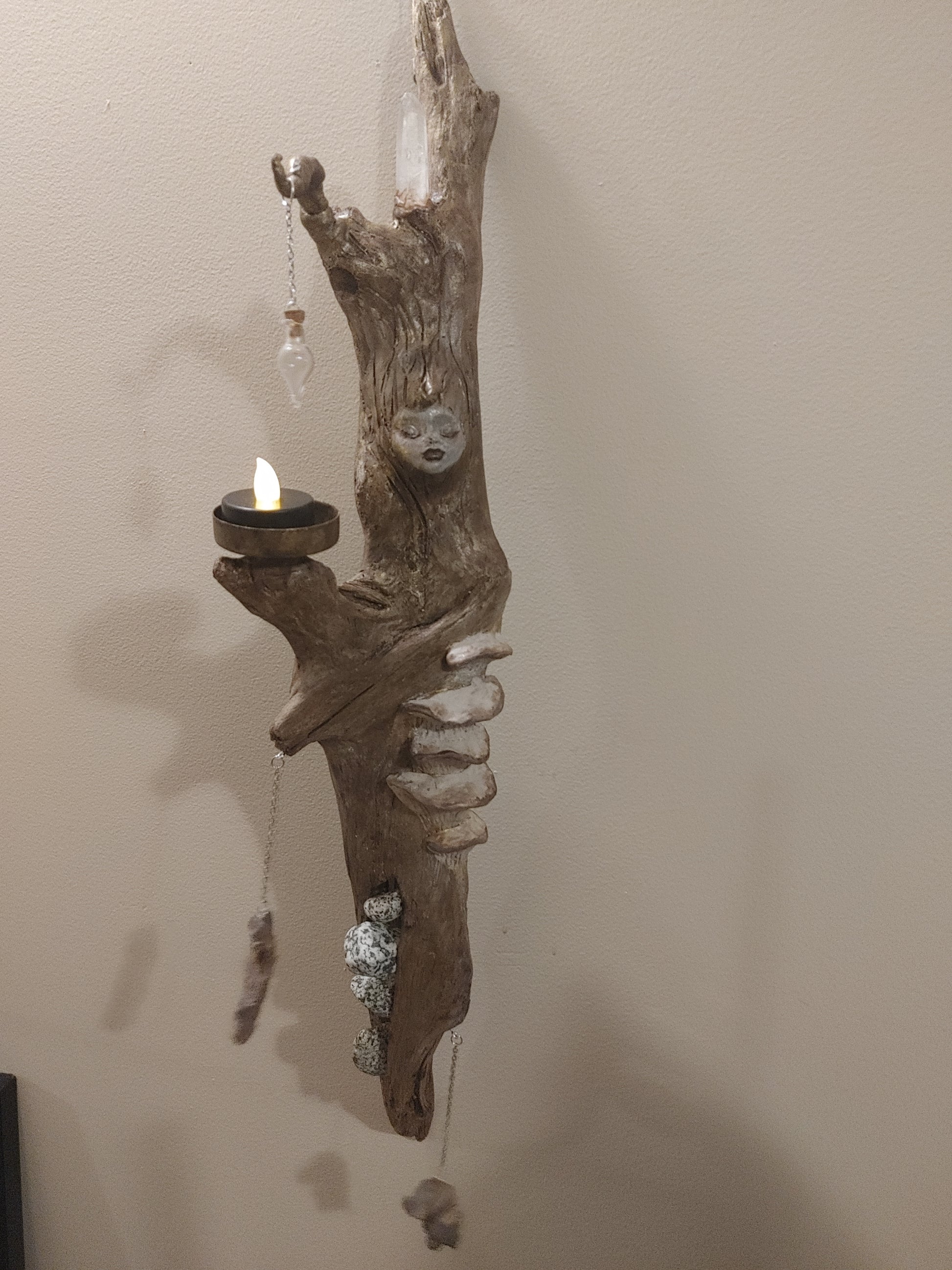 These wood sculptures are all different of course. I roam the beaches to find the perfect piece of wood. Comes with a diffusing portion bottle and your choice of potion. A candle can be used to gently heat the essential oils within depending on the distance.